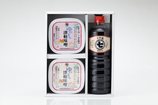 津軽産大豆の八割糀味噌と、塩分20%カット(弊社濃口醤油と比べて)の本醸造淡口醤油のセットです。
